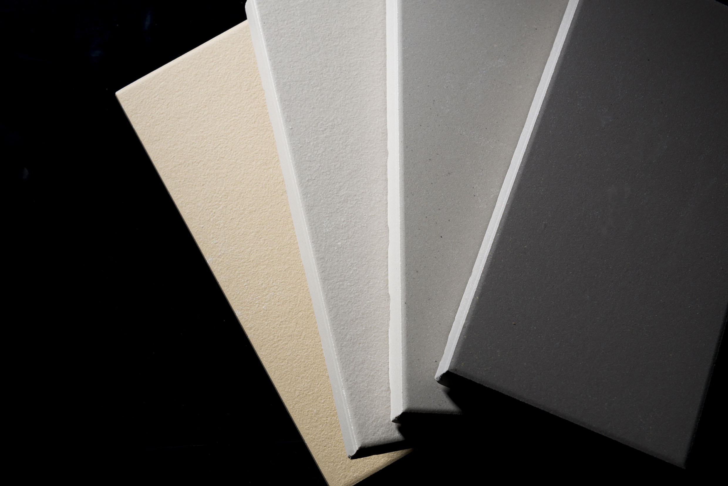 Les carrelages que nous confectionnons sont des grès cérames pleine masse. Par leur dureté et leur épaisseur (12 à 20 millimètres), ils offrent une solidité et une pérennité particulièrement adaptées aux usages et en matière d’hygiène sanitaire. Nos céramiques sont fabriquées en Allemagne et en Italie dans des filiales d’Höganäs Céramiques France.