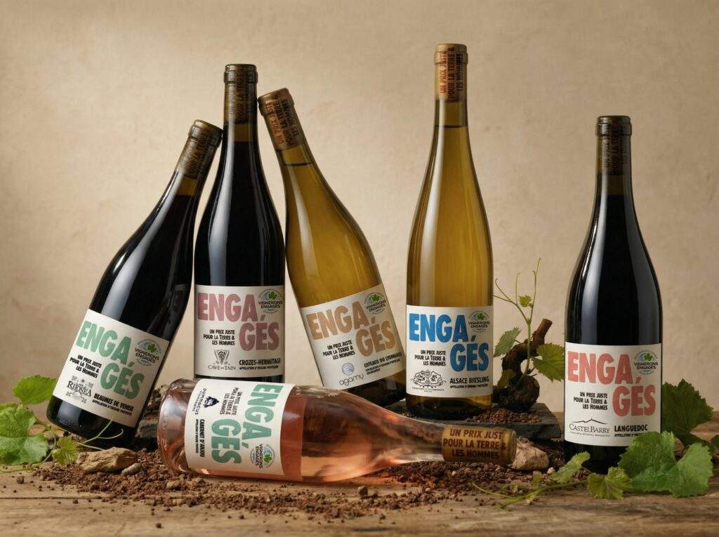 Le collectif ne fixe donc pas de prix de vente strict pour les vins « Engagés » — nous imposons par contre la transparence sur un indicateur chiffré, adapté à chaque entreprise, qui montre combien de valeur réelle est redistribuée vers le producteur ou l’économie locale. Ce pourcentage varie parce que chaque vignoble, appellation et mode de production a ses propres réalités économiques.